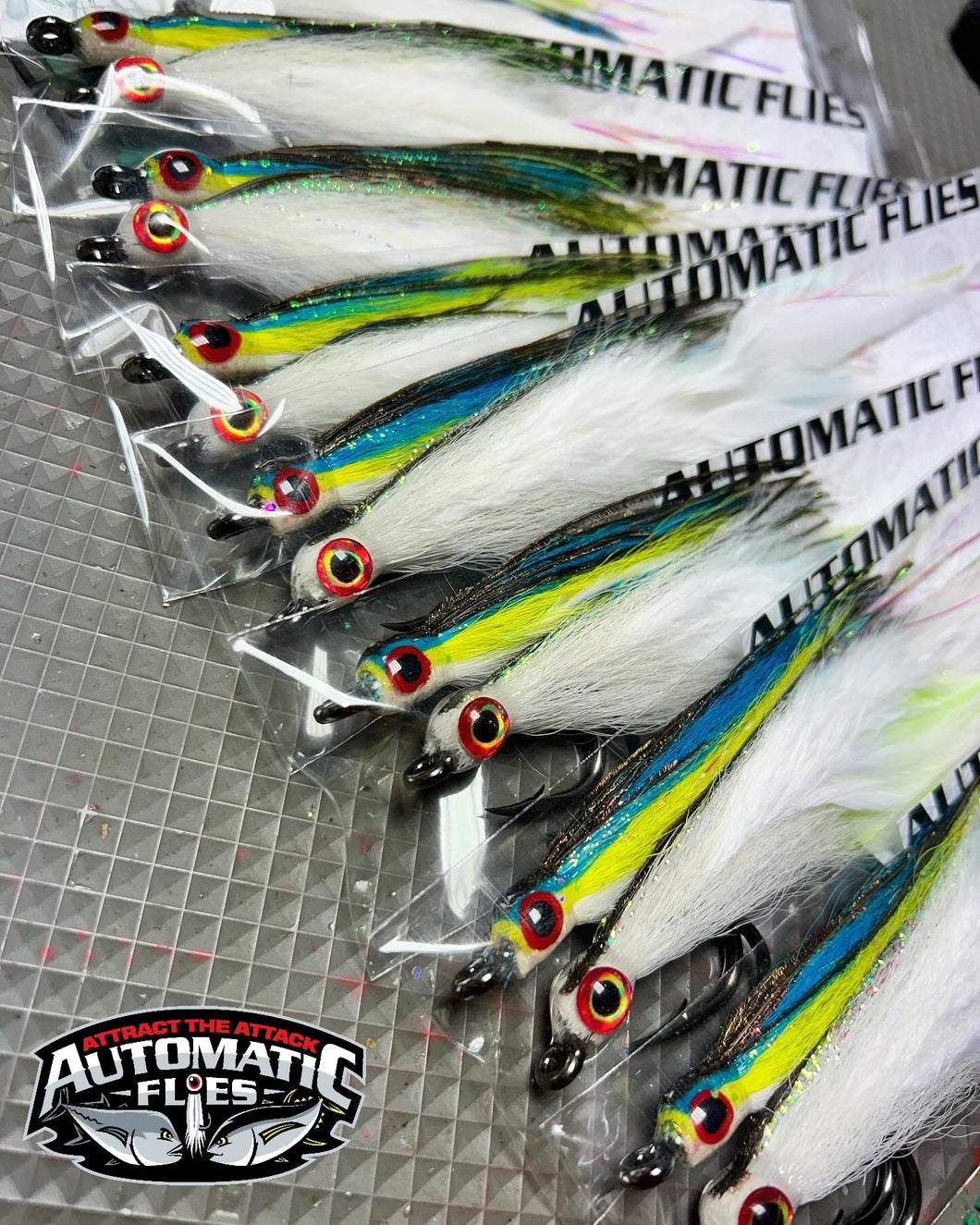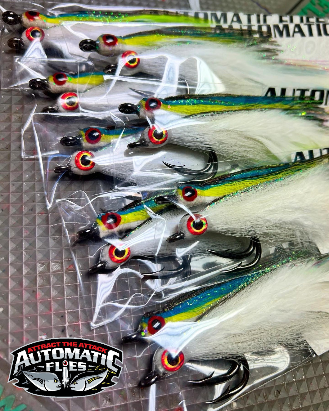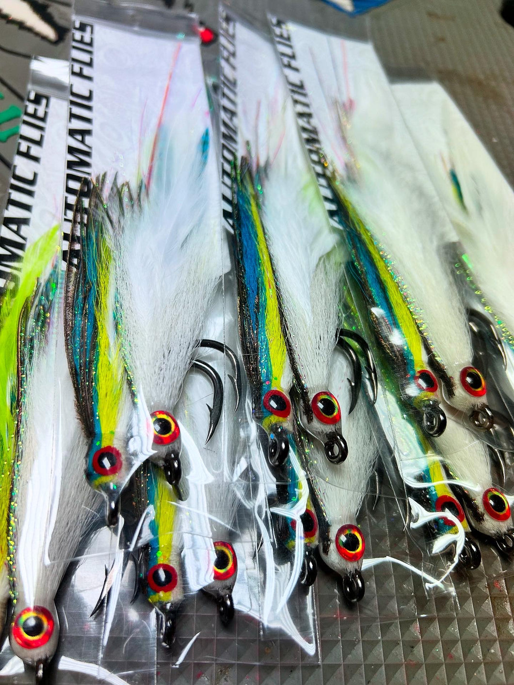 I had requests to make larger versions of the standard Automatics and this is how this collection came about. The Magnum versions have a larger head, more blending with added body and flash to create a larger flow. All are built on Gamkatsu SL12S 6/0 hooks.